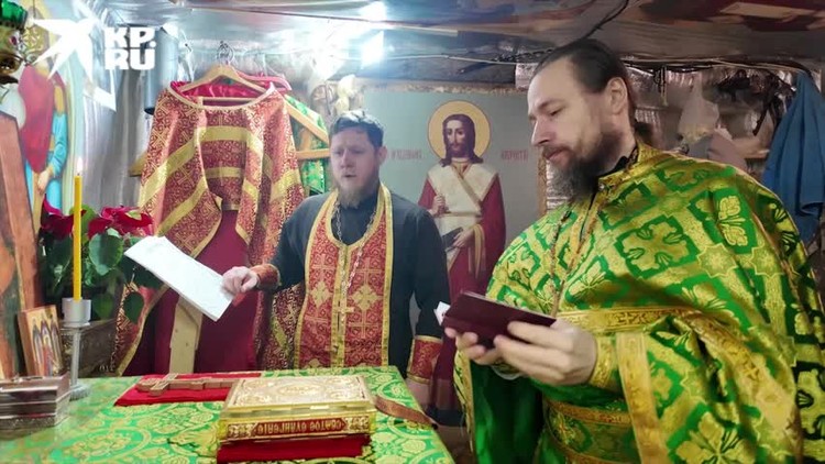 Novoroční bohoslužba se konala v kopaném kostele ruských výsadkářů Dněprské skupiny vojsk.