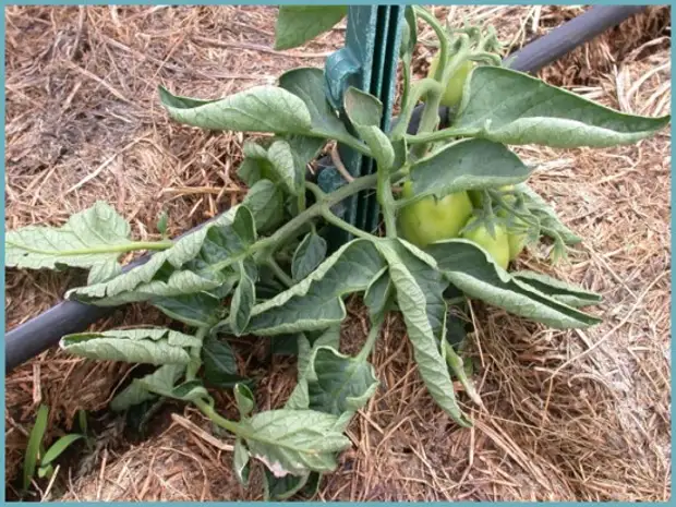 Důležité! Při nedostatečné zálivce se listy rajčat stočí nahoru, zůstanou zelené, bez skvrn nebo známek parazitismu hmyzu.