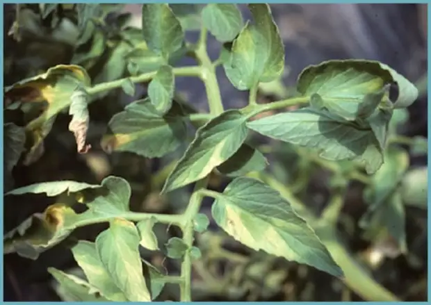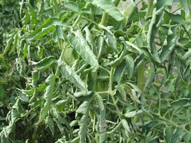 Toto houbové onemocnění lze nalézt také pod názvem Fusarium wilt. Pokud se listy rajčete ve skleníku postupně stočí do zkumavky a příznak se šíří po celé rostlině od spodních listů k vrcholu, pak lze mít podezření na přítomnost této konkrétní choroby. Přidružené příznaky v tomto případě by měly být: