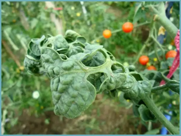 Nemoc rajčat je způsobena viry a může se rychle šířit z jedné rostliny na druhou ve skleníku. Když jsou rajčata infikována tabákovou mozaikou, listy získají hrbolatý povrch a stočí se. V tomto případě se na listové desce vytvoří vzor se střídajícími se skvrnami a skvrnami různých tmavých a světle zelených odstínů.